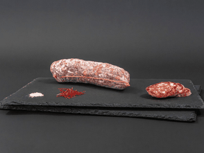 Salame crudo arricchito con zafferano del Roero che dona gusto delicato e profumo intenso.