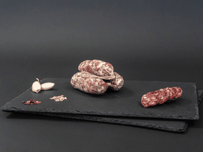 Salame crudo insaporito con peperoncino, semi di finocchio e aglio.