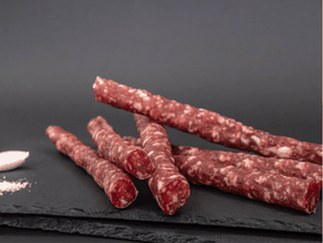 La salsiccia stagionata Luiset è realizzata con tagli magri di pancetta macinati finemente e aromatizzati con spezie. L’impasto viene insaccato in un budello naturale di agnello, che le conferisce la forma sottile e allungata. Dopo una fase iniziale di asciugatura, segue una stagionatura accurata di circa due settimane che ne esalta il sapore e la consistenza.