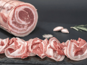 La Pancetta Luiset è una variante della Pancetta Tradizionale, viene preparata con una speziatura con aglio e rosmarino, per ottenere un gusto più fresco e un'aroma invitante.