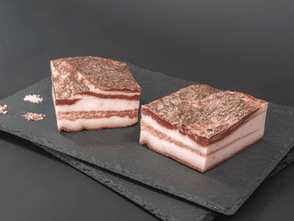 Ingredienti: pancetta di suino (origine: Italia), sale marino, spezie, piante aromatiche, conservante: nitrato di potassio.