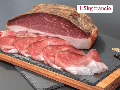 Lo Speck Luiset è ottenuto da cosce di suino selezionate, disossate e rifilate con cura. Dopo la salatura e l’aromatizzazione con spezie ed erbe, viene affumicato naturalmente con truccioli di legno di faggio e lasciato stagionare per un periodo variabile, dai 6 fino ai 10 mesi, a seconda della pezzatura. Durante la stagionatura assume la caratteristica forma irregolare a rettangolo e sviluppa il suo gusto inconfondibile. Si consiglia di affettarlo a mano circa mezz’ora prima del consumo.