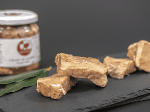 Maiale marinato sott’olio preparato con carne lasciata macerare con un mix di spezie per ottenere una consistenza tenera simile a quella del tonno.